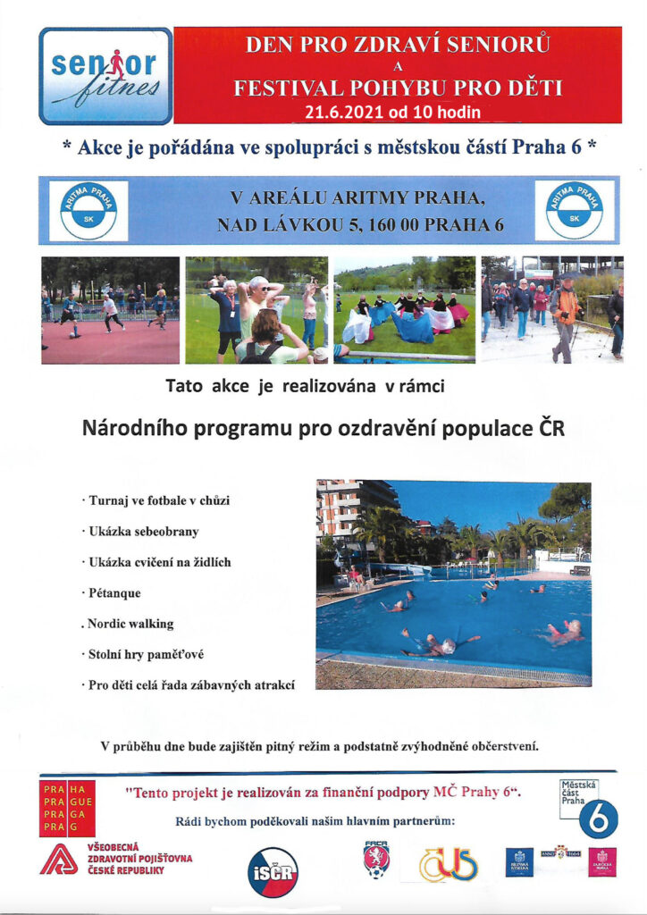 Členská organizace Rady seniorů Senior fitnes zve všechny zájemce na akci, která se uskuteční 21. června 2021 v areálu Aritmy Praha. Akce se koná v rámci nového projektu, jímž je Národní program pro ozdravění populace. Tento projekt, k němuž se hodlá připojit i Rada seniorů ČR, představí v průběhu Dne pro zdraví předseda Senior fitnes Mgr. Zdeněk Srba, podrobněji.