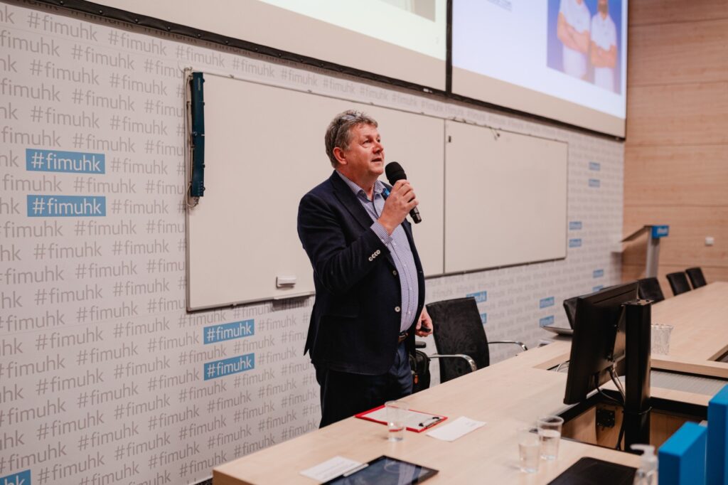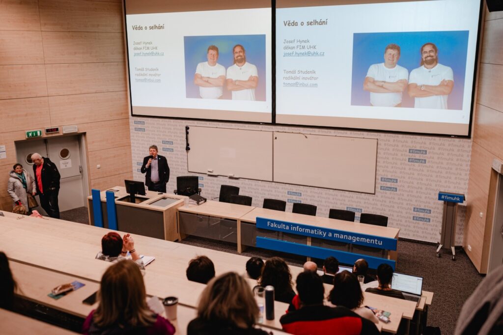 Celé odpoledne završil inspirativní přednáškou s názvem „Umění neúspěchu“ prof. Josef Hynek, děkan Fakulty informatiky a managmentu UHK. S elegancí a hloubkou otevřel téma z oblasti vědy o selhání a připomněl nám všem, že neúspěch není konec cesty, ale spíše důležitým krokem, jak čerpat sílu pro další rozvoj.