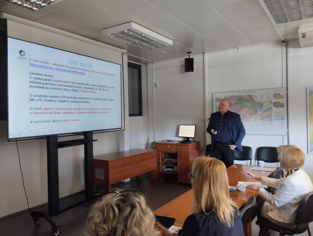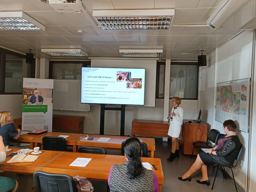 Poslední den čtyřdenní akce přivítala slovenské kolegy Vysoká škola báňská – Technická univerzita Ostrava. V prostorách Geologického pavilonu prof. Pošepného se s nimi o své zkušenosti podělili nejen garantky U3V Ekonomické fakulty a Hornicko-geologické fakulty VŠB-TUO, ale také zástupci Ostravské univerzity, Slezské univerzity v Opavě i její Obchodně podnikatelské fakulty v Karviné či Oddělení dalšího vzdělávání Univerzity Palackého v Olomouci. Závěrem programu akce v Ostravě si část hostů se zájmem prohlédla i rozsáhlé geologické sbírky VŠB-Technické univerzity, které jsou v pavilonu umístěny.